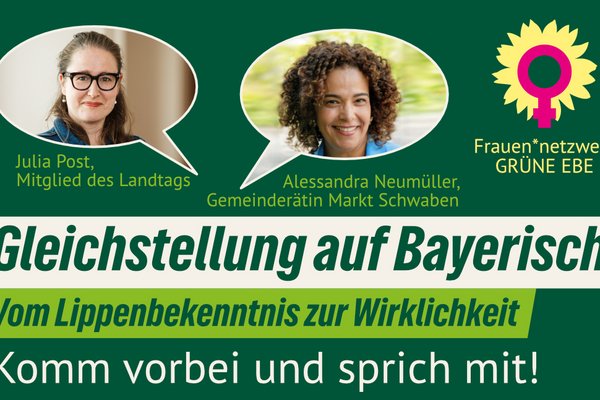 Julia Post (MdL) diskutiert mit Alessandra Neumüller (Gemeinderätin) und uns, warum wir 2025 immer noch nicht da sind, wo wir sein sollten. Eine Veranstaltung vom Frauen*netzwerk EBE, auch Männer sind eingeladen!