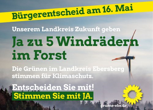 JA zu fünf Windrädern im Forst. Entscheiden Sie mit! Stimmen Sie mit JA.