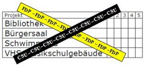 Wir Grüne hatten den Antrag eingereicht, der eine Bürgerbefragung zu den geplanten Großprojektender Gemeinde zum Ziel hat. Wir hatten den Antrag bereits vor einem Monat den anderen Fraktionen zugeleitet, um die Möglichkeit zu geben, das Für und Wider zu diskutieren und eine vernünftige Entscheidung intern herbeizuführen, wie man zu der Bürgerbefragung steht. Alle Fraktionen haben diese Möglichkeit genutzt, allerdings mit unterschiedlichen Ergebnissen. Während die gesamte Opposition die Befragung der Bürger als sehr hilfreich für unsere Arbeit als Gemeinderat einschätzte und befürwortete, beschloss die CSU/FDP, unseren Antrag abzulehnen und hatte eine Vielzahl mehr oder weniger schwacher Argumente dafür zu bieten. Einige Beispiele: Man würde so nur bei den Bürgern Wünsche wecken (Die Bürger haben diese Wünsche längst), die Befragung sei nicht repräsentativ (keine Befragung ist wirklich ganz repräsentativ), die CSU kenne bereits die Meinung der Bürger (ein solches, Allwissenheit einschließendes, Selbstverständnis macht natürlich jede Art von Bürgerbefragung überflüssig), man drücke sich vor der Verantwortung (=wenn man die Meinung der Bürger ignoriert, stellt man sich folglich der Verantwortung?) usw.