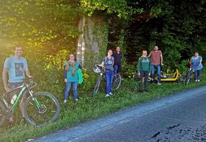 Etliche Vertreter*innen der Grünen machten sich am Pfingstmontag mit dem Fahrrad auf den Weg zu einer Ortsbesichtigung zum Kreisel bei Seeschneid (Grafing). Es handelt sich bei der Eiche dort um eine ausladende Eiche mit riesiger Krone und 4,20 Meter Stammumfang. Das stellte Landschaftsgärtner Stefan Ruoff, der auch Gemeinderat in Vaterstetten ist, fest. Es ist davon auszugehen, dass die Eiche lange frei stand und daher die mächtige Krone bilden konnte. Der Wald in der Umgebung dagegen ist sehr jung. Die Eiche ist von sehr hoher ökologischer Bedeutung.
