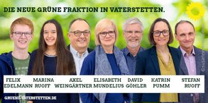 Sieben grüne Gemeinderät*innen werden ab Mai die Kommunalpolitik gestalten. 3 Frauen und 4 Männer zwischen 18 und 59 Jahren.