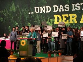 Für Simone Peter und Cem Özdemir gab es Blumen, Elektroräder und lange Standing Ovations; auch als Christian Ströbele ein letztes Mal auftrat, riss es alle von den Sitzen. Jürgen Trittin sprach ergreifend über den kürzlich verstorbenen Grünen-Gründungsvater Helmut Lippelt.