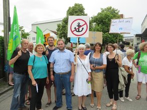 Unter diesem Motto hatte der Verein Seite an Seite e.V. in Markt Schwaben am Montag, 11. Juni 2018 zur Demonstration aufgerufen. Anlass war der Besuch von Ministerpräsident Markus Söder beim Brauereifest. Vom Treffpunkt am Rathaus zog die Gruppe mit Trommeln, Hupen und Plakaten zur Brauerei Schweiger und platzierte sich auf der gegenüberliegenden Straßenseite, um lautstark ihre Meinung zur aktuellen Flüchtlingspolitik kundzutun.