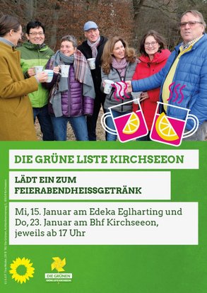 Die Grüne Liste Kirchseeon möchte alle Bürger*innen der Gemeinde Kirchseeon herzlich zu einen Feierabendheißgetränk einladen, um in winterlicher Atmosphäre über die Themen für die kommende Wahl zu diskutieren.