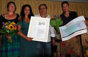 Martina Neubauer, die Fraktionssprecherin der Bezirkstagsgrünen zeigte sich sehr beeindruckt von der wortgewaltigen Rede. Sie übereichte den mit 1.500 € dotierten Preis, den Frau Nirit Sommerfeld in ihre Arbeit mit Asyl-Kindern investieren wird.