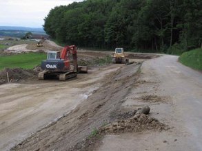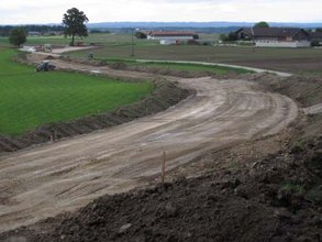 Entgegen den Beteuerungen im Vorfeld: die neue Straße verläuft auf keinem Meter auf der alten Trasse. Die "Krönung": ein überdimensionierter Kreisel.