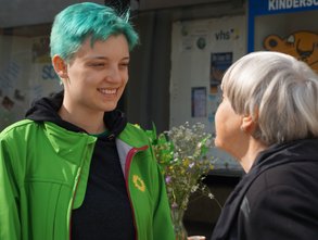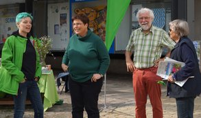 Bundespolitische Themen traten beim Ebersberger Infostand zur Bundestagswahl hinter dem bayernweit angelaufenen Grünen Volksbegehren gegen den Flächenfraß fast zurück. Anna-Maria Lanzinger, unsere BT-Kandidatin, trug maßgeblich dazu bei, dass die ersten Unterschriftenlisten rasch gefüllt wurden.