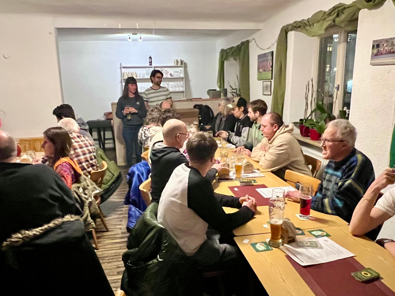 Am Dienstagabend (10.02.) trafen sich 24 Personen auf Einladung der GRÜNEN Ebersberg für ein Schafkopfturnier in der Alten Post Ebersberg. Unter dem Namen „Grün sticht“ lud der Ebersberger Ortsverband erstmals dazu ein, die bayerische Kartenspieltradition in geselliger Atmosphäre zu pflegen.