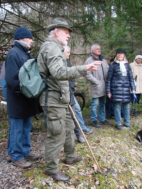 Über 20 Interessierte aus der näheren Umgebung fanden sich am Treffpunkt ein; die meisten blieben bis zum Ende der fast 2-stündigen Exkursion, und konnten sich ein eigenes Bild machen. Der Bahndamm von Grafing nach Glonn wurde 1972 aufgelassen, seither dient er im Wesentlichen für Wanderer als Erholungsgebiet. So blieb die Natur weitgehend ungestört. Sehr kenntnisreich erläuterte Georg Ettenhuber vom Bund Naturschutz an markanten Stellen die vielfältigen hier lebenden Arten. Ringelnatter und Schlingnatter, Blindschleiche und etliche Eidechsenarten, mehrere Froscharten, Kröten und Molche, sowie eine Fülle von Schmetterlingsarten sind dort beheimatet: Schwalbenschwanz und Widderchen, Aurorafalter und Enzianbläuling, kleiner Eisvogel (eine seltene Schmetterlingsart!), Nachtpfauenauge, Brauner Bär und Kaisermantel, um nur einige der geschützten Arten zu nennen.