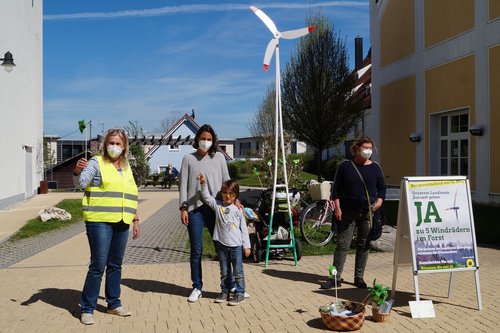 Alle Windräder, von den kleinen grünen bis zum großen, weißen aus Holz gebauten, drehten sich unaufhörlich bei unserem Infostand am Platz der Ehrenamtlichen in Ebersberg. Wer mag da behaupten, es läge keine Energie in der Luft?