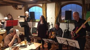 Dem Ruf zum Blues-Frühschoppen sind mehr als 60 Besucher gefolgt. Die Brunnenstube im alten Hof war damit bis zum Rand gefüllt und das Publikum den Musikern ganz nah. Den Frühschoppen eröffnete Gesa Band, in der der Bürgermeisterkandidat die erste und einzige Geige spielt. Zu hören waren Klassiker wie „Sway“, schottischer Folk und zwei jiddische Stücke, bei denen das Publikum begeistert mitging.