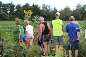 Über den Zauberwinkel und den Sportplatz gelangte die Gruppe zu den Krautgärten. Seit diesem Jahr können Bürgerinnen und Bürger dort Parzellen pachten und selbst Obst und Gemüse anbauen. Werner Dankesreiter, einer der Initiatoren dieses Projekts und Gemeinderat für die Grünen in Poing, zieht nach einem halben Jahr folgendes Resümee: “Die Krautgärten haben sich prächtig entwickelt und die Gartler werden mit reichen Ernten für ihre Mühen belohnt“.
