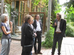 Als Vertreter der Inhaberfamilie, führte Karl Schweisfurth die Delegation der Grünen, zu der neben Susanne Tausendfreund und Margarete Bause diesmal auch Waltraud Gruber, Birgit Woska-Mayer, Burgl und Walter Ismaier gehörten, durch die Hermannsdorfer Landwerkstätten.