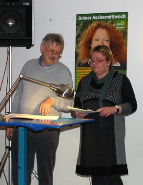 Mit Gedichten und Literatur von Ludwig Thoma, Carl Amery, Karl Valentin, der Biermösl Blosn hatten die vier Grünen KandidatInnen, die abwechselnd oder gemeinsam rezitierten, eine ausgewogene Mischung aus ernst und heiter gefunden, um auf die Eigenarten der Bayern einzugehen.