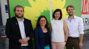 Die Fraktionsvorsitzende der Grünen im Deutschen Bundestag, traf den Landtagskandidaten der Grünen, Thomas von Sarnowski, Tobias Vorburg, Vorsitzender des lokalen Vereins „Seite an Seite – Wegbegleitung für Geflüchete“ und Ottile Eberl, Bezirkstagskandidatin.