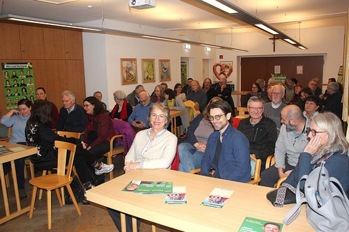 Das Ratszimmer in Aßling war bis auf den letzten Platz besetzt, als am vergangenen Samstag rund 60 Menschen kamen, um Gisela Sengl, die Landesvorsitzende der Bayerischen Grünen, und den Klimaschutzbeauftragten Sebastian Gardt zum Thema Wohnen zu erleben.
