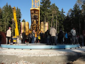 Anschließend konnte noch eine Baustelle eines neuen Windparks besichtigt werden. Sehr beeindruckend war der 150 Meter hohe Kran. Laut Lenz ist nur durch die neue Krantechnik der Bau von binnenlandoptimierten Windkraftanlagen möglich geworden. Lediglich Deutschland ist bisher in der Lage solche Kräne zu bauen. Auch das ist ein Bespiel wie stark sich die regenerativen Energien als Wirtschaftsmotor erweisen.