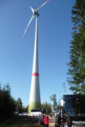 Bürgermeister und Gemeinderäte aus Velburg, Anlagenerbauer und Anlagenbetreiber standen für Fragen zur Verfügung und konnten viele Bedenken zerstreuen. Velburgs Bürgermeister Bernhard Kraus, der die Gäste unter einem Windrad begrüßte, steht der Windenergie in seiner Gemeinde sehr positiv gegenüber. Das nächste Windrad will er unter Gemeinderegie betreiben.
