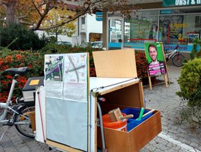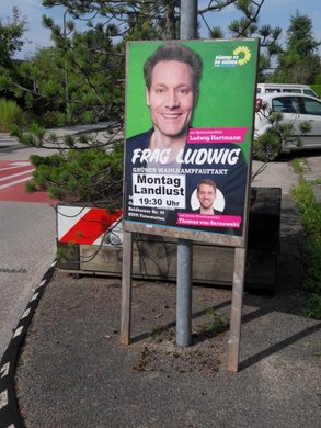 Dank der Verweigerung der CSU, eine Plakatierungsordnung zuzulassen, muss hoher Aufwand getrieben werden, um im Schilderwald bemerkt zu werden. Knapp war die Zeit bemessen, die Plakate dafür zu kleben und zu platzieren.