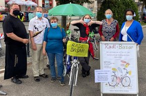 Den regelmäßig im Frühjahr stattfindenden Radl-Basar haben wir in Markt Schwaben wegen der Corona-Pandemie in diesem Jahr zunächst ausfallen lassen. Wegen der allgemeinen Lockerungen entschieden wir uns jedoch, den Radl-Basar noch kurz vor den Sommerferien abzuhalten. Die Genehmigung zog sich diesmal etwas hin, auch weil die Gemeinde eine Zustimmung des Gesundheitsamtes Ebersberg verlangt hatte. Schließlich hat es doch geklappt und die Veranstaltung konnte bei schönem Wetter mit Mund-Nasenschutz und unter Beachtung der Abstandsregeln stattfinden. Das Angebot waren diesmal geringer, was auch daran liegen kann, dass Werbung nur über das Internet und die Presse erfolgt ist.