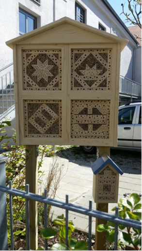 Wird unserem Antrag stattgegeben, so werden die Wildbienenhäuser der Lehmbau Manufaktur gemeinnützige eG (www.lehmbau-manufaktur.de) in Modulbauweise (Beispiel: siehe Bild) verwendet. Diese könnten in Bausätzen geliefert und auch durch eine interessierte Schulklasse oder Schülerfirma zusammengebaut werden. Den Schülern kann so vieles über die heimischen Bienenarten, die Lebenskreisläufe der Natur und deren Schutz nähergebracht werden.