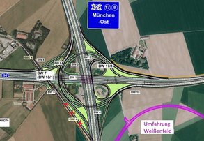 Die Verwaltung lädt zum nächsten ULV-Ausschuss Vertreter der Autobahndirektion Südbayern ein und bittet diese, die Planungen (und Planungsüberlegungen) zum Umbau des Autobahnkreuzes München-Ost (A99-A94) zu präsentieren und auf Fragestellungen, die im Zusammenhang mit den in Planfeststellung befindlichen Umfahrungen von Weißenfeld und Parsdorf bestehen, Stellung zu nehmen.