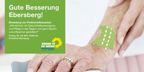 Die Abgeordneten der grünen Landtagsfraktion, die innenpolitische Sprecherin und regionale Abgeordnete Susanna Tausendfreund sowie die gesundheitspolitische Sprecherin Theresa Schopper, laden alle interessierten BürgerInnen und regionalen ExpertInnen ein, darüber zu diskutieren, wie Pflege in der Region Ebersberg und in ganz Bayern im Angesicht des demografischen Wandels zukunftssicher gestaltet werden kann. Mit Ludwig Mittermeier, dem Kreisgeschäftsführer des Caritaszentrums für den Kreis Ebersberg sowie dem Geschäftsführer der Kreisklinik Ebersberg gGmbh, Stefan Huber, sind zwei hochkarätige und praxiserfahrene Fachleute aus der Region auf dem Podium.