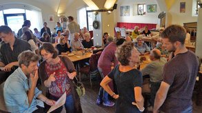 Deutlich über 50 Besucher*innen wollten am Donnerstag Nachmittag in Ebersberg Robert Habeck, Bundesvorsitzender, erleben und Fragen stellen.