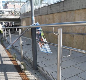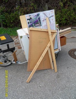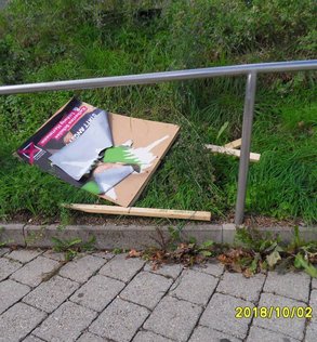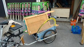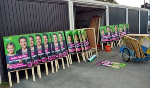 Zu sehen wäre, wie das "Spitzenduo" der CSU dank schlecht befestigter Plastikplatae (=Vordermann-Plakate zum wegwerfen) im heftigen Wind herum geschleudert werden.