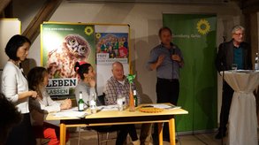 „Mit Windrädern in Bürgerhand können alle Ebersberger an der Energiewende verdienen. Ein Windrad bringt so viel Energie wie PV-Anlagen auf durchschnittlich 800 Dächern“, konterte etwa Susanne Schmidberger (Platz 3). „Parkraum zu schaffen heißt: den Autoverkehr subventionieren. Stattdessen wollen wir Raum für Zonen in denen sich alle Verkehrsteilnehmer*innen gleichberechtigt bewegen können, nicht nur am Marktplatz, sondern auch an den Schulen“, erklärte Jürgen Friedrichs (4). „Der Goldner-Tunnel ist unsere Lösung für den geringstmöglichen Verkehr“, sagte Helmut Fink (6). „Die heutige konventionelle Landwirtschaft bedroht unsere Lebensgrundlagen“, so Theresa Stark (7). Für die Bauern müsse es sich lohnen, auf bio umzustellen. „Die Nachfrage müssen wir aber selber schaffen!“, appellierte Dr. Marc Block (2) an die Anwesenden. Er erläuterte auch, was „Quartierskonzepte“ bringen sollen: niederschwellige Freizeitangebote, gemeinsame Energienutzung, gute Einkaufsmöglichkeiten in allen Stadtvierteln. Einen Manager brauche es dafür nicht, sondern gemeinsames Übernehmen von Verantwortung. „Die richtigen Unternehmen nach Ebersberg bringen“, ein Zauberwort dafür heißt „coworking spaces“, also intelligent genutzter gemeinsamer Raum, so Lakhena Leng (5). „Wirtschaftswachstum, ein Plus bei den Arbeitsplätzen und bei der Gewerbesteuer - das funktioniert damit auch ohne neuen Flächenverbrauch.“