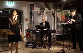 „Mazel tov“, also „viel Glück!“ oder „viel Erfolg!“ - mit diesem Ohrwurm stimmten Nirit Sommerfeldund ihre Band „Shlomo Geistreich“ das gespannte Publikum auf den Abend ein. Der begann mit der Vorstellung von Waltraud Gruber, Grüne Landratskandidatin und dienstälteste Grüne Kommunalpolitikerin in Bayern. Die derzeit stellvertretende Landrätin zählte die Maßnahmen auf, mit denen sie beeindruckend ihr Leben ökologisch umgebaut hat. Beim CO2-Zähler kam dann trotzdem heraus, dass sie mit ihrem Lebensstil immer noch 1,7 Planeten verbraucht. (Und es hängen doch in ganz Ebersberg Plakate, denen zufolge es keinen „Planet B“ gibt!) Die Empfehlung des CO2-Zählers löste allgemeine Heiterkeit aus: „Engagieren sie sich politisch für Klimaschutz!“