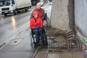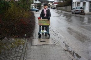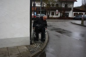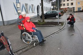 Unser Weg führte vom Heim zum Rathaus und zu verschiedenen Einkaufsmöglichkeiten. Immer wieder waren es vermeintliche Kleinigkeiten, die uns behinderten, und für ältere Personen nur schwer zu überwinden sind.