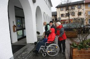 Manchmal scheiterten wir auch einfach: der Aufgang zur Arztpraxis ist unüberwindbar, zum Optiker gelangt man nur über eine hohe Stufe. Selbst das Rathaus ist nur über den Hintereingang erreichbar, der aber nicht durchgängig geöffnet ist. Auch im Rathaus sind die meisten Räume nur über Treppen zugänglich. Barrierefreiheit sieht anders aus.