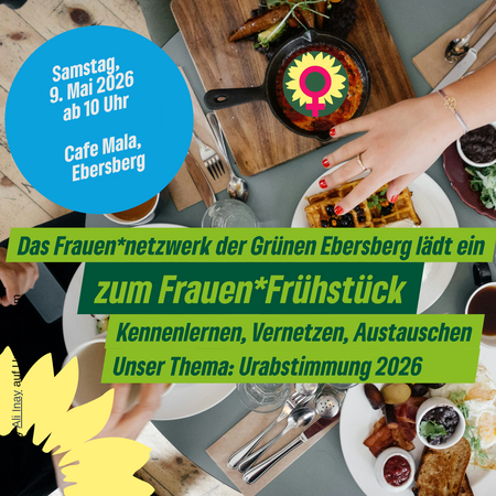 Das Grüne Frauen*netzwerk GRÜNE EBE lädt herzlich zum nächsten gemeinsamen Frühstück ein. In entspannter Atmosphäre wollen wir uns austauschen, vernetzen und miteinander ins Gespräch kommen.