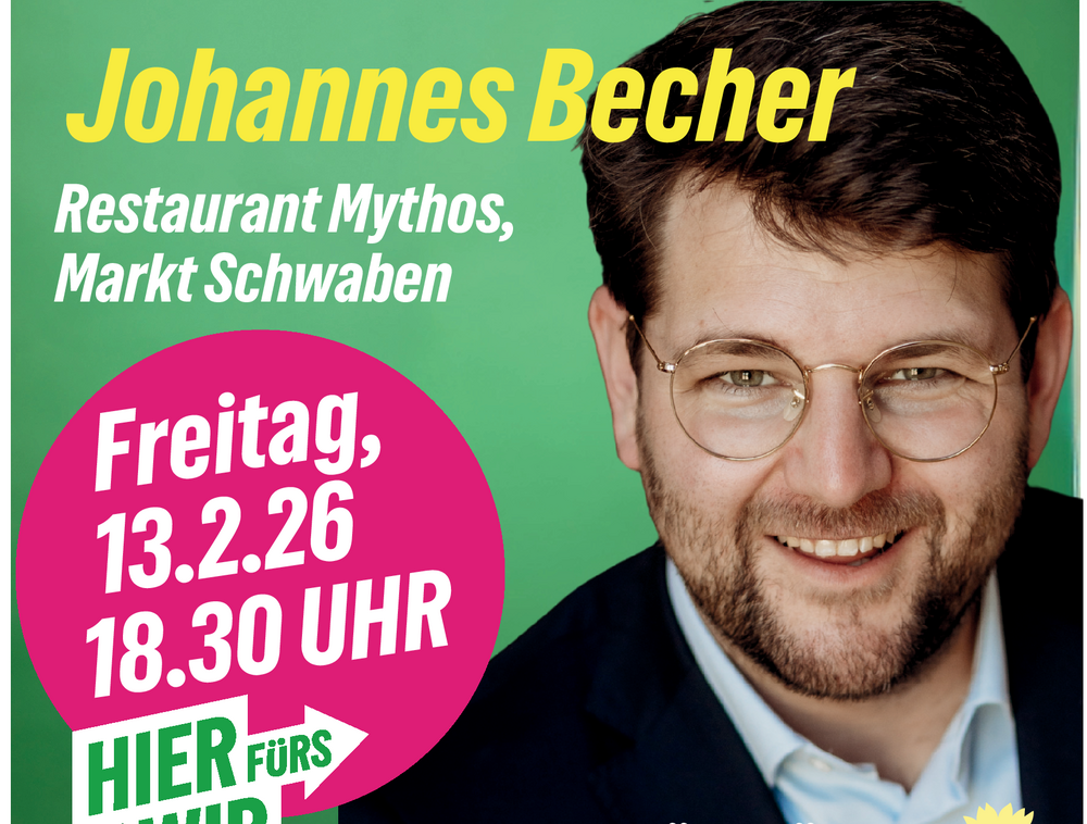 Markt Schwabens Schulden, ein Dauerthema – Zeit, über die Finanzen unserer Gemeinde zu sprechen! Die Markt Schwabener Grünen laden Sie herzlich ein, mehr über kommunale Haushaltspolitik zu erfahren. MdL Johannes Becher kennt dieses Thema aus allen Blickwinkeln - als Stadtrat in Moosburg, als Kreisrat und als stellv. Fraktionsvorsitzender der Grünen im bayerischen Landtag. Er wird am Freitag, 13. Februar 2026 um 18:30 Uhr Thema „Kommunale Finanzen" beleuchten und für Diskussionen zur Verfügung stehen. Im Anschluss besteht die Gelegenheit zum persönlichen Austausch – auch mit unseren Kandidatinnen und Kandidaten für den Gemeinderat.