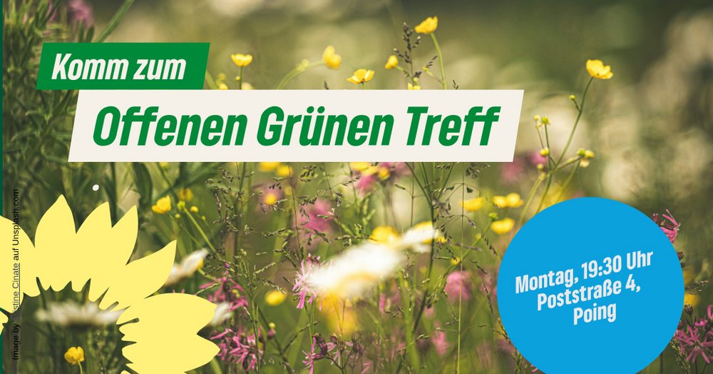Herzlich laden wir alle Interessierten und Grüne Mitglieder zu unserem nächsten offenen Treffen ein. Bringt eure Themen und Fragen mit. Wir sitzen in lockerer Runde zusammen und besprechen ortsbezogene Themen zur Mobilitätswende, dem Natur- und Umweltschutz und mögliche Maßnahmen um dem Klimawandel vor Ort in Poing entgegen zu gehen. Dazu planen wir Veranstaltung und tauschen Ideen für Poing aus.