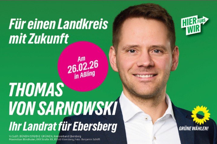 Landratskandidat Thoms von Sarnowski kommt nach Aßling! Diskutieren Sie mit. Er kandiert, "weil unser Landkreis echte Lösungen für unsere Zukunft braucht – statt leerer Versprechen und einen Landrat, der Millionen am Kreistag vorbei in den Sand setzt."