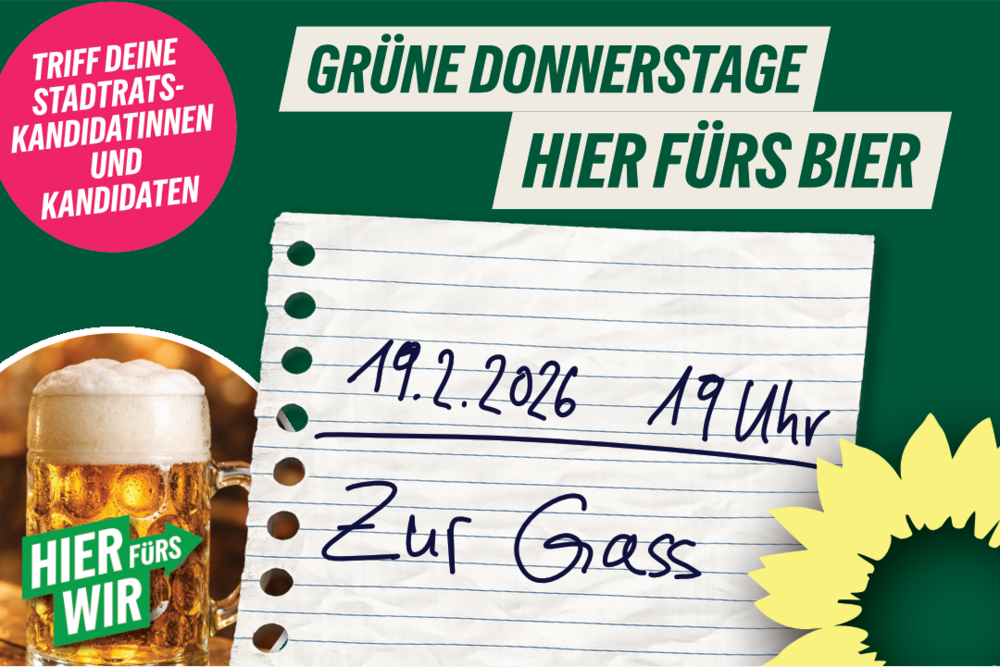 Lust auf gute Gespräche in entspannter Runde? Bei unseren Grünen Donnerstagen triffst Du unsere Stadtratskandidatinnen und -kandidaten ganz ungezwungen.