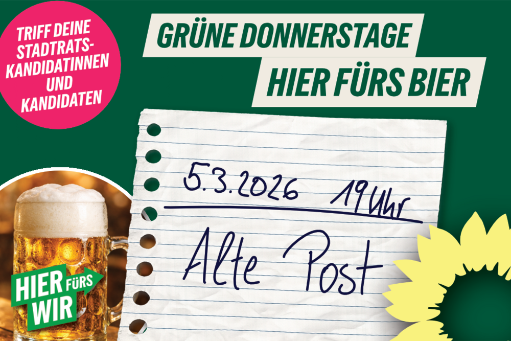 Lust auf gute Gespräche in entspannter Runde? Bei unseren Grünen Donnerstagen triffst Du unsere Stadtratskandidatinnen und -kandidaten ganz ungezwungen.