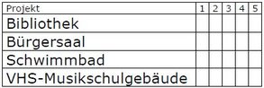 Da es in der Gemeinde viele Großprojekte gibt bzw. anstehen, soll die Bürgerschaft befragt werden, wie diese Vorhaben in ihrer Wichtigkeit eingeordnet werden sollen. Dies würde dem Gemeinderat eine Hilfestellung bieten, um möglichst bürgernah die Entwicklungen in der Gemeinde voran zu treiben.