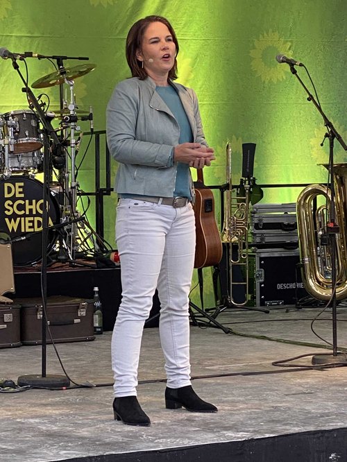 Annalena Baerbock live: Faktensicher, engagiert, kämpferisch, mitreißend. Wahlkampfauftritt der Extraklasse am 17. August 2021 in Dachau. 1500 Anhänger*innen und Interessierte waren begeistert.