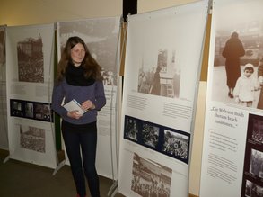 Schülerinnen und Schüler aus den Gemeinden Grafing, VG-Aßling und Anzing waren zu Ausstellungsbegleiterinnen unter dem Motto »Jugendliche begleiten Jugendliche« ausgebildet worden. Eine Schülerin hat uns die beeindruckenden Bilder und Zeittafeln aus dem Leben der Anne Frank erläutert.