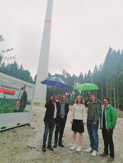 Gemeinsam mit Eva Lettenbauer, Vorsitzende von BÜNDNIS 90/DIE GRÜNEN Bayern, und Michael Bloss, Abgeordneter des Europäischen Parlaments für BÜNDNIS 90/DIE GRÜNEN haben Vertreter:innen des Ortsverbands Grafing und Kreisverbands Ebersberg das beeindruckende Windrad "Hirtenholz" bei Taglaching besucht und sich vor Ort über das innovative Bürgerenergieprojekt informiert.