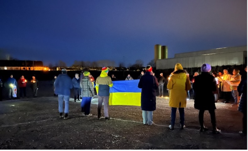 Als gemeinsames Symbol mit dem Wunsch nach Frieden und Gedenken an die Opfer des Krieges bildeten alle Teilnehmer das Friedenssymbol und ließen Kerzen brennen. Ein Psalm eines Kriegsopfers wurde vorgelesen. Besonders emotional war das abgespielte Lied „Imagine“ von John Lennon.