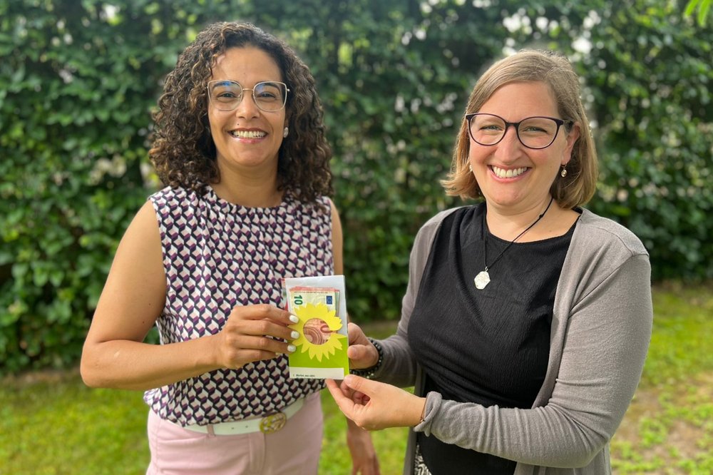 Die erste Spende für die Wildbienen-Oase überreichte übrigens Alessandra Neumüller im Namen der Orts-Grünen: ein Scheck über 85 Euro aus dem Erlös des Radlbasars.