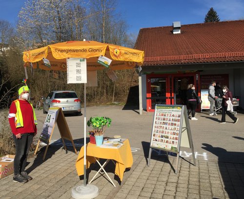 Glonner Infostände zum Bürgerentscheid Windräder im Ebersberger Forst am 24.04.21 vor Penny und am 08.05.21 am Marktplatz in Glonn