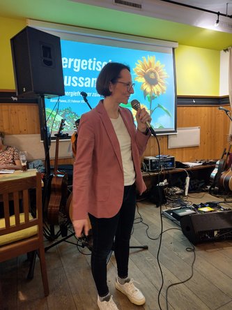 Zwischen den Songs haben unsere grünen Kandidat:innen für Gemeinderat und Kreistag mit kurzweiligen Vorträgen verschiedene Themen präsentiert:
