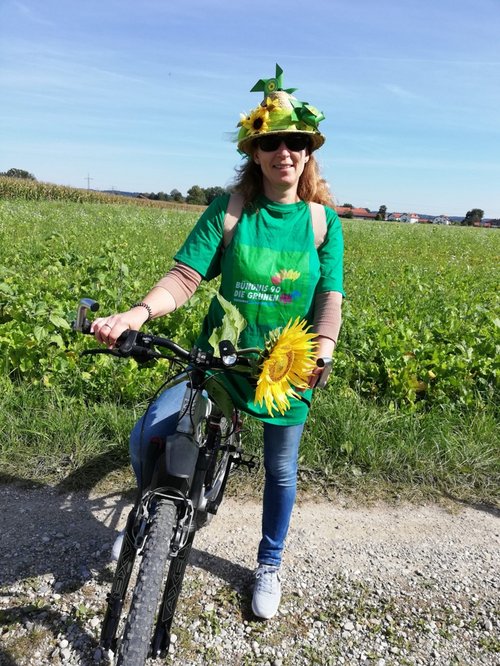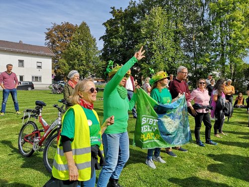 Die Abordnung der Grünen aus Kirchseeon haben sich am Freitag um 13 Uhr in Osterseeon getroffen und sind gemeinsam nach Grafing zum Klimastreik geradelt. Evelyn Buckl hatte uns mit diversen Utensilien samt geschmückten Hüten ausgestattet und wir hatten schon bei der Anfahrt die Blicke der Passant*innen auf uns gezogen.