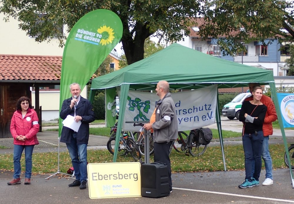 Ziel war der Polizeispielplatz, wo unser erster Bürgermeister Thomas Stark als Schirmherr sowie Jürgen Friedrichs vom ADFC Ebersberg auf der Abschlusskundgebung jeweils kurze Reden hielten. Außerdem wurden noch Unterschriften für den Radentscheid in Bayern gesammelt. Die Unterschriftensammlung für dieses Volksbegehren wird von einem breiten Bündnis organisiert, bei dem auch die Grünen aktiv dabei sind.