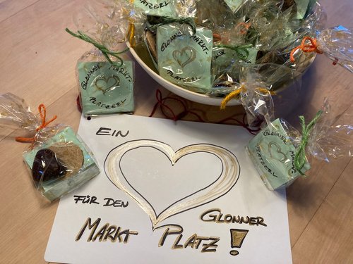 Zur Gemeinderatssitzung am 28.11.2023 haben wir allen Glonner Gemeinderät*innen ein ‚Glonner Markt-Platzerl‘ und gute Wünsche mitgegeben. Denn dort ging es u.a. um die Beantragung der Städtebau-Fördermittel zur Neugestaltung des Glonner Marktplatzes.